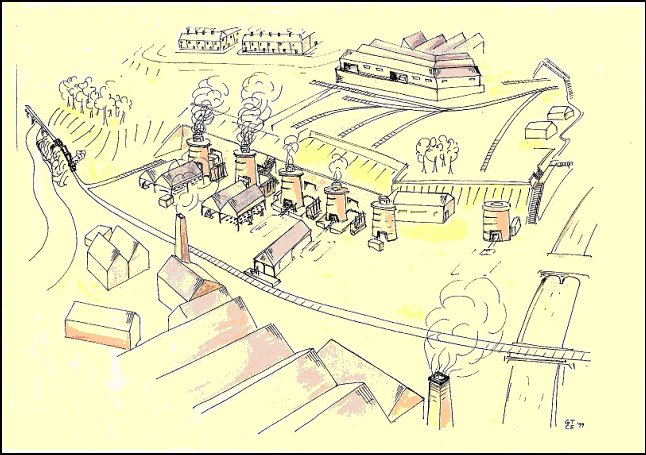 Artists' impression of Calderbank ironworks, circa 1850's (Watercolour by C Evans)
