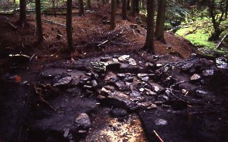 Excavations at Tamveich Burn, Argyllshire showed that bloomery iron was produced in low shaft furnaces. These furnaces were of the non-tapping type. Excavations at Allt na Caerdach (the burn of the smith), Loch Eck, Argyllshire revealed another type of furnace, rather rare, but nevertheless known, namely the bloomery hearth. given the shallowness of the hearth, it was inevitably being tapped in the course of smelting. The slags showed a high manganese oxide content.